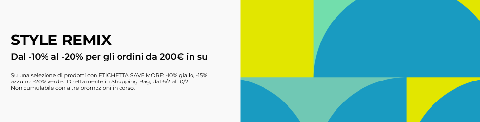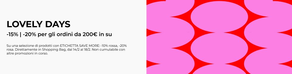 Il -20% sugli ordini da 150€ in su sui prodotti contrassegnati con etichetta SAVE MORE ROSSO e il -25% sui prodotti contrassegnati con etichetta SAVE MORE ROSA, per gli ordini dal valore complessivo superiore alla soglia indicata, si applicano direttamente in Shopping Bag solo dal 07/11 al 11/11.